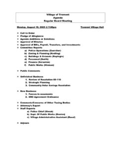 Village Board Meeting Agendas