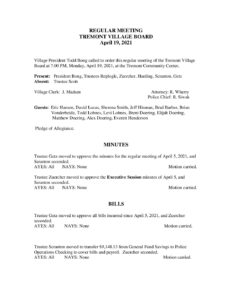 Board Minutes – April 19 2021